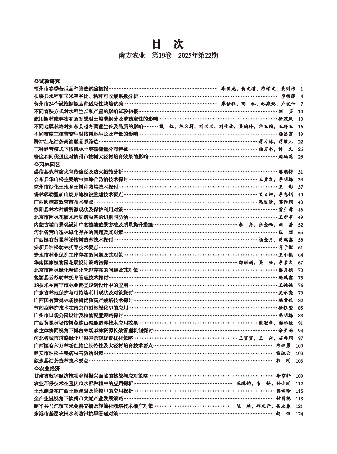 《南方农业》2025年11月下半月刊(第22期)目次